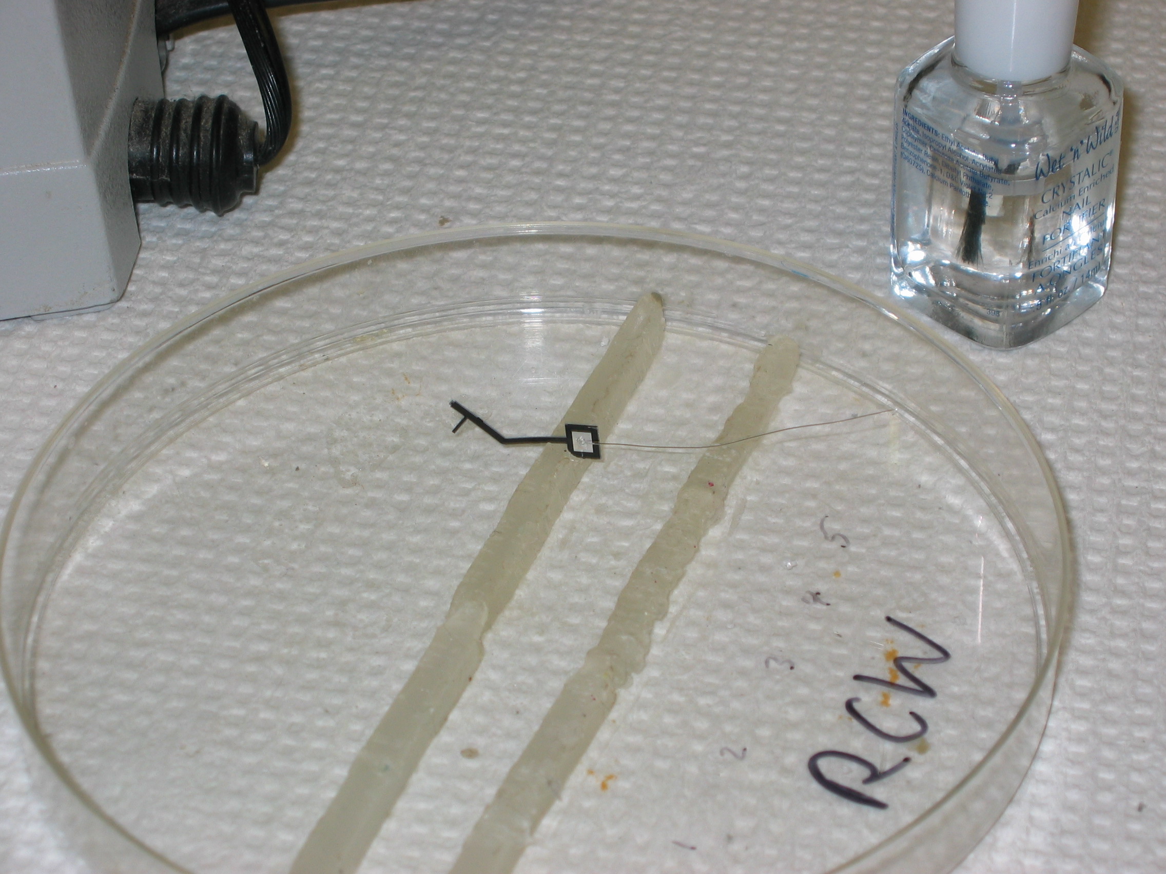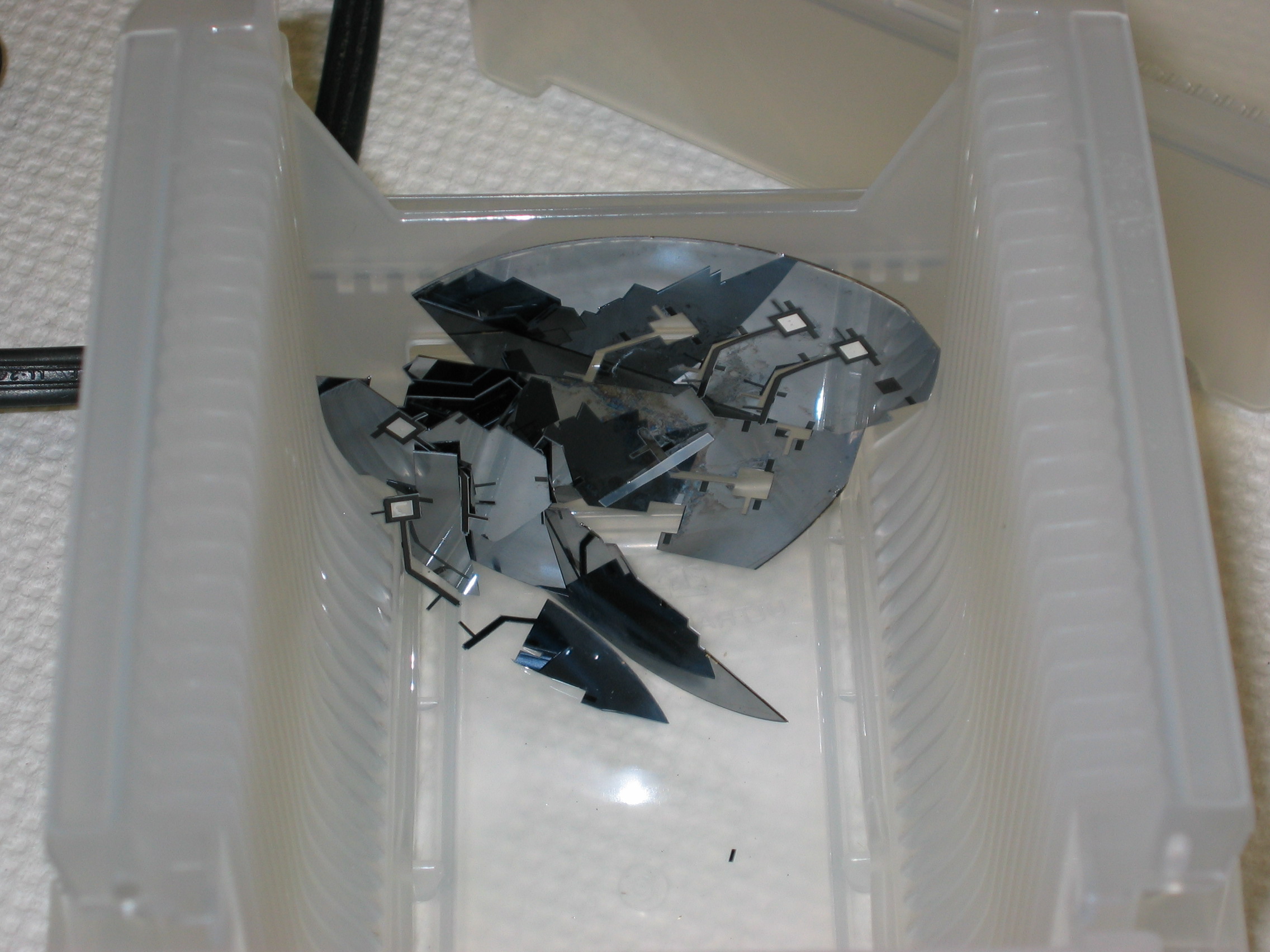 Figure 13: storing the probes in dental wax Figure 14: broken wafer Click on the images for enlargement.